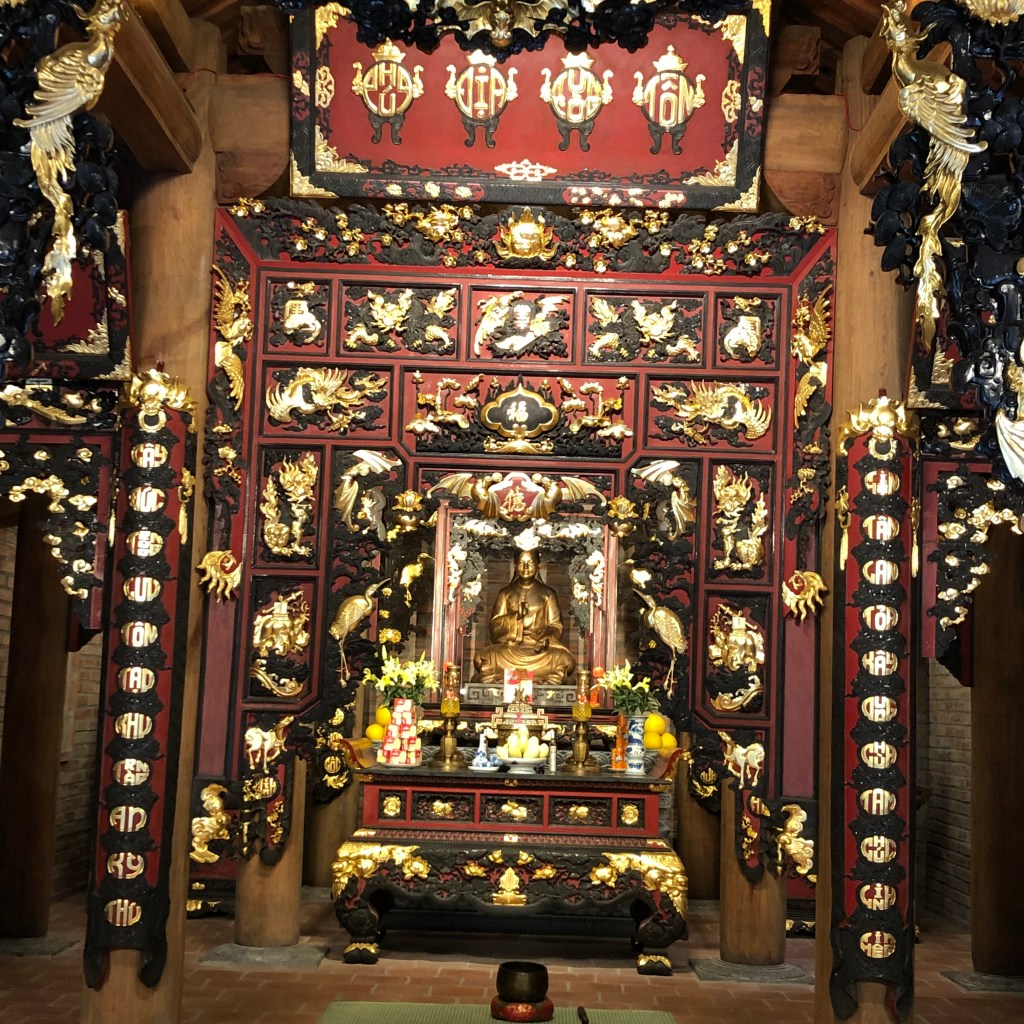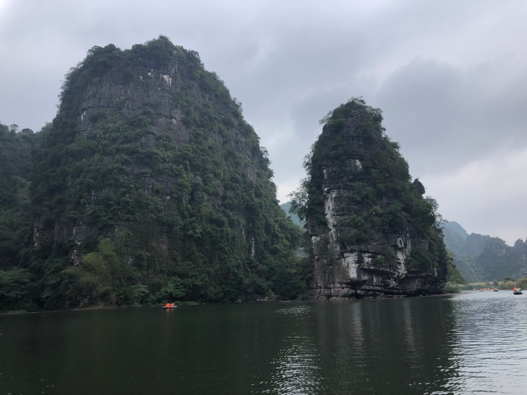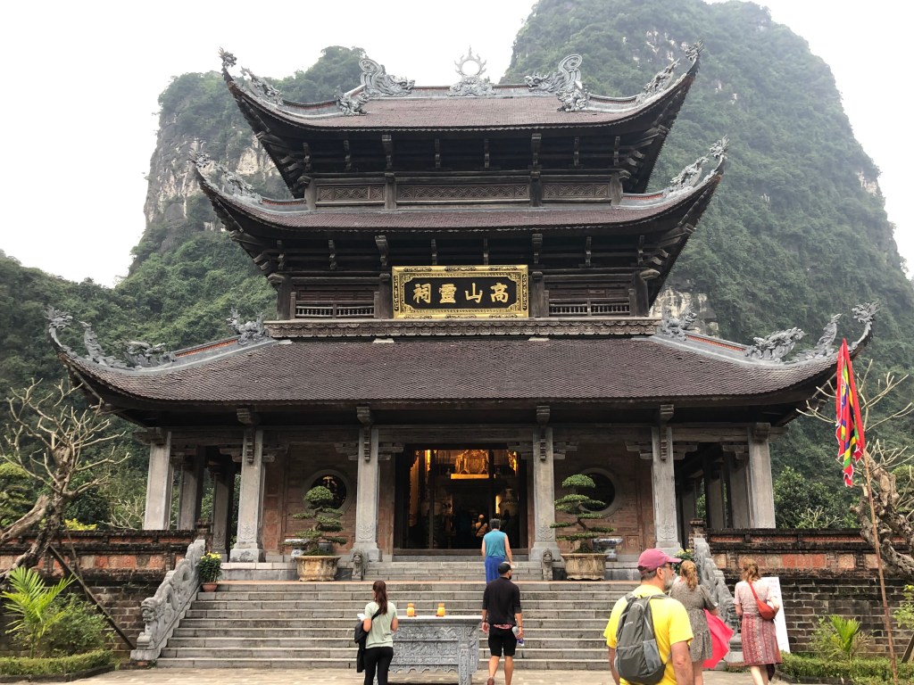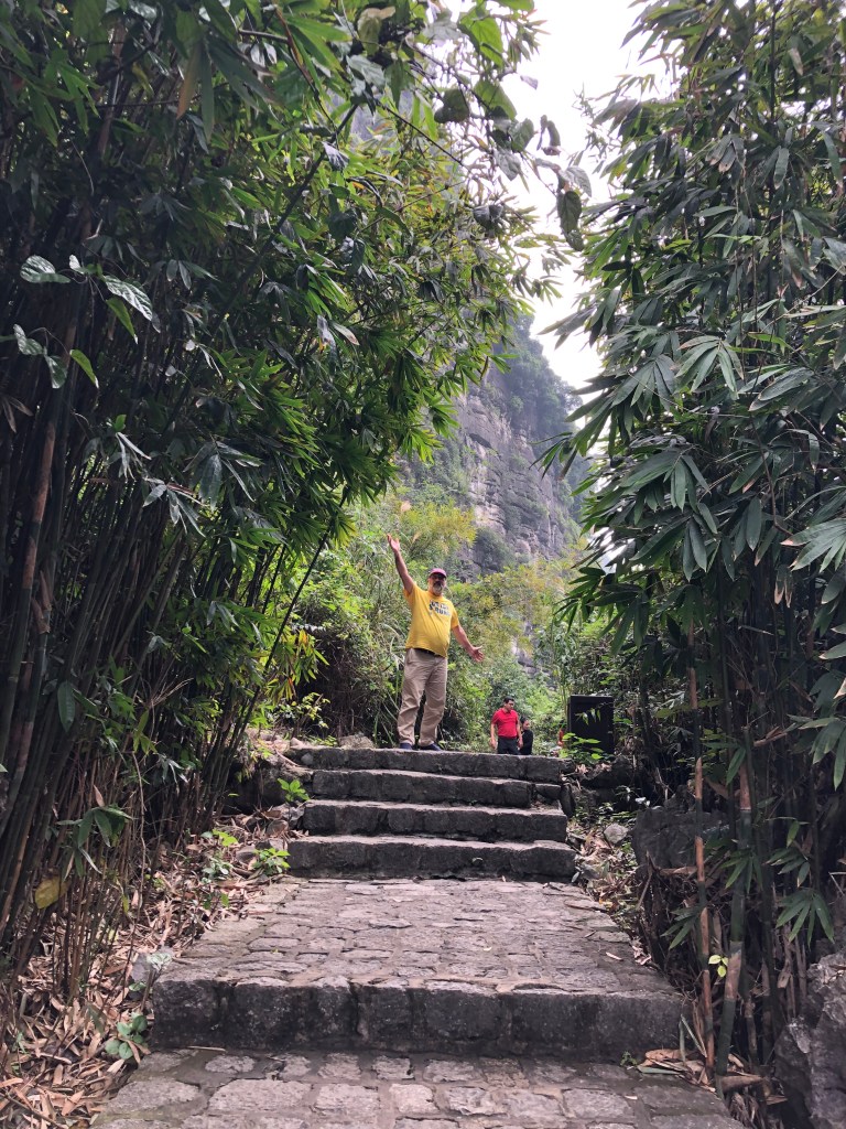 The first and best stop was Trang An – a World Heritage Site. It offers relaxing 3 hour boat tours in row boats that took us on calm rivers and through water caves with about five stops to get out a explore the restored 10-12th century temples. Each boat takes four people and we were lucky to pair up with two women from the Netherlands with a sense of humor and excellent English. We really enjoyed this adventure.