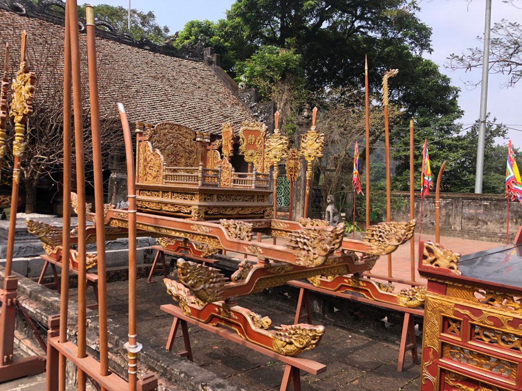 Hoa ceremonial GateGate to first temple area we visited heeA fancy ride for an EmperorAnother impressive gateShe sold us a pomelo and showed how to peel it. Found in