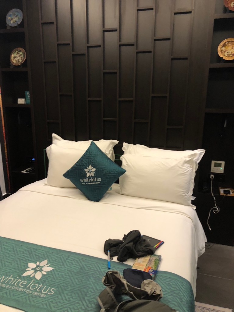 We arrived in Hue around 9:45, checked into the White Lotus Hotel – very fancy and I had to check my booking because I thought it looked expensive. But it’s only $45/night. After leaving off our suitcases we walked in the cold (to us – 55!) to a nearby lively restaurant for a light meal. Then slept very well.