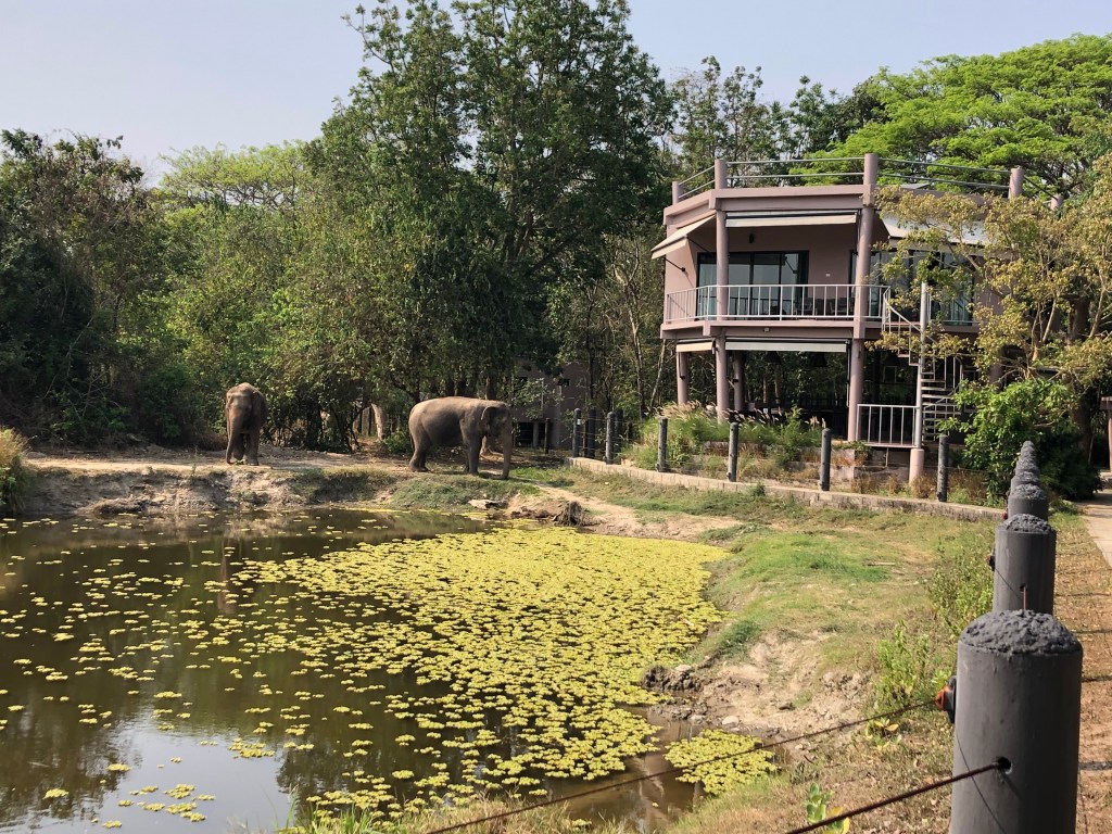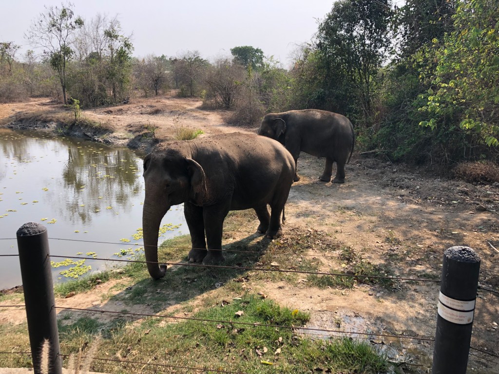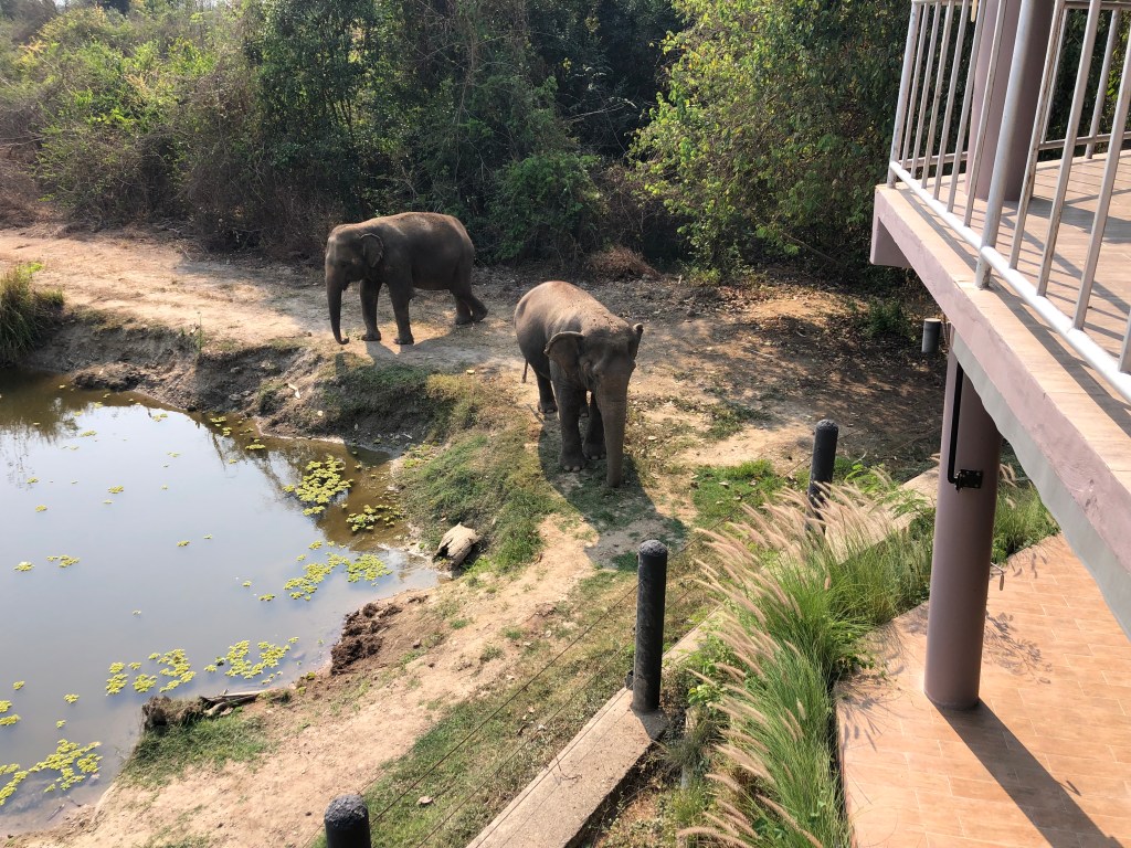 Today we joined a full-day tour of the Thai Wildlife Rescue Center after waking up to Gibbons calling to each other in the woods near us. I walked to get closer to a few elephants in the large open field near the Gibbon’s island (gibbons won’t cross water).