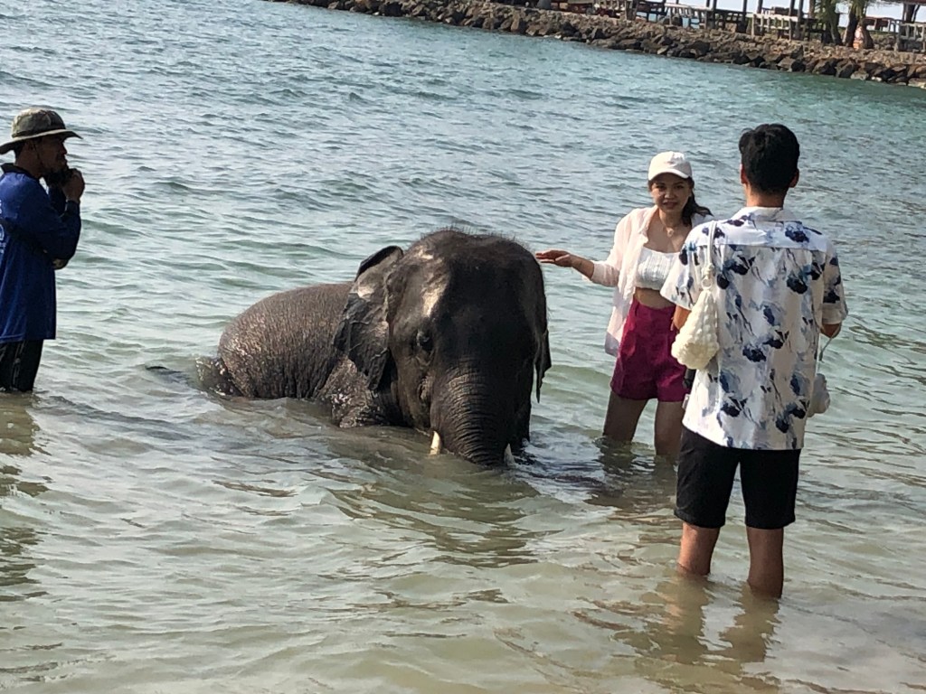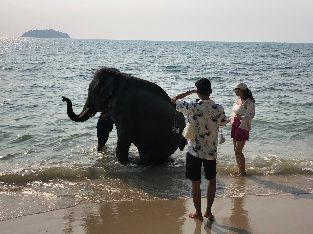 Also one last day of beach photos and  today that includes an elephant swimming at our beach. (There are many elephant camps on Koh Chang – and it seems that each have 4 – 7 elephants. We haven’t participated here…