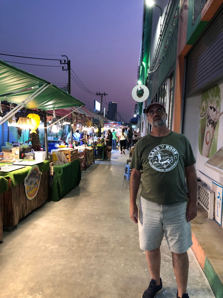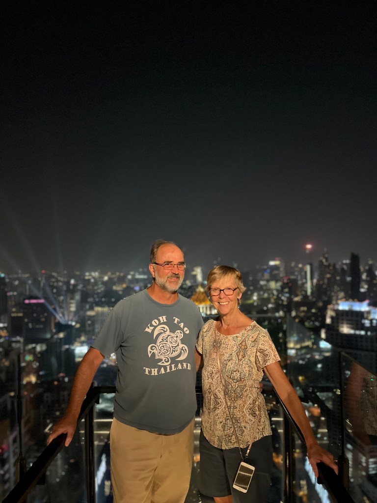 Dirk enjoys having a drink at roof top bars, and this is the city for it. We found two nearby on our first night – the Muse Hotel, relatively low but still 25th stories high and the other on the 40th floor at the Kimpton Maal Lai Hotel.