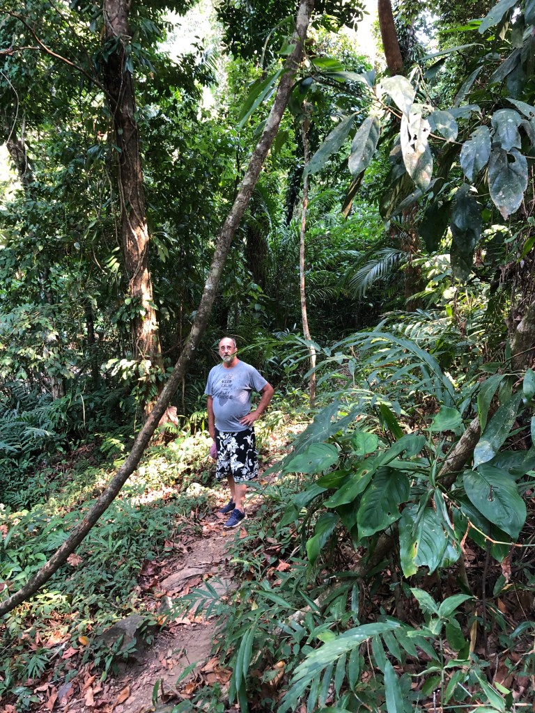The manager got us a taxi van to drive us an hour to the Wildlife Rescue and here we are. They have a lodge and additional separate cabins, and as I type this early morning I hear gibbons calling to each other. After lunch yesterday we walked back to our treehouse cabin to see two elephants right in front. We walked trails and saw many gibbons in large cages and more elephants and other wildlife.