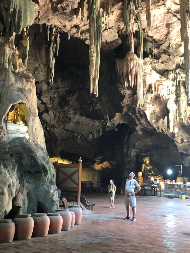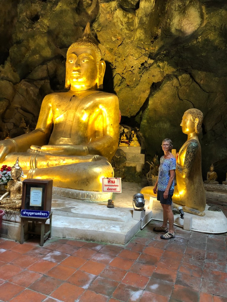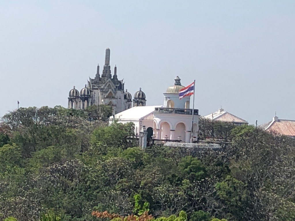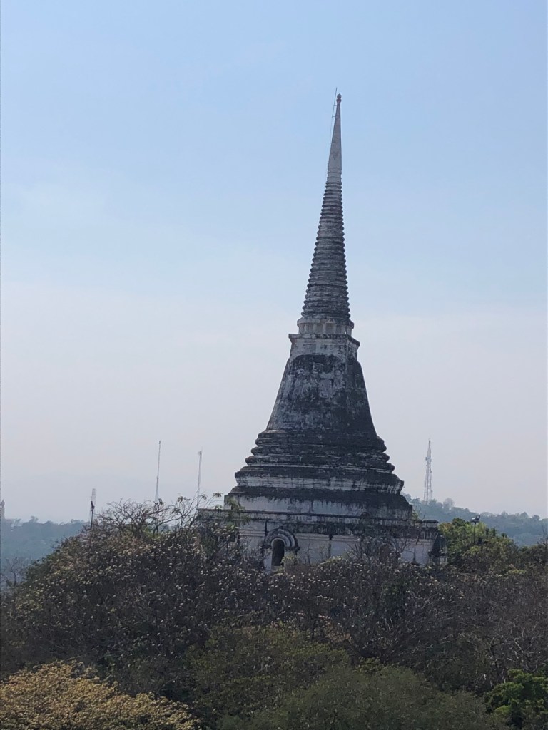 We got an inexpensive ride to the popular beach town of Hua Hin since others were returning there from their visit to I Love Phants Lodge. We walked the Hua Hin beach (pretty but many very large condos and hotels) but weren’t happy about the heavy traffic near us and no easy access to small cafes. Today we headed back to Phetchaburi so we could go up the local mountain and see the temples up close that were outside our window when we were here a few days ago. After we arrived off we went- and spent some hot hours looking at many 1860+ building, temples and summer palaces. We are tired now but are happily in the same room as before because of a cancellation (there are only 3 rooms)😀.