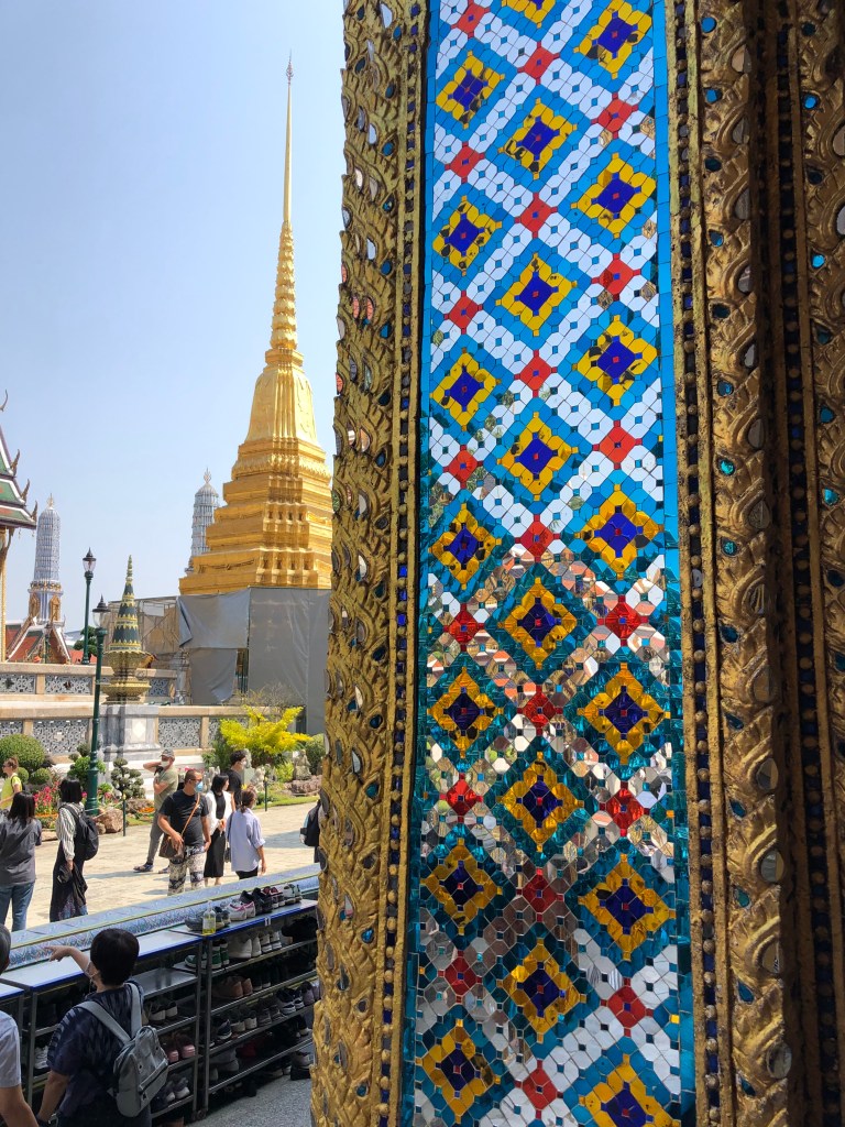 On the 4th we walked to the sky train station then to the river to a take hop- on-hop -off boat north to see various palaces and temples. We loved being on the river enjoyed the beauty/opulence of the Grand Palace site.