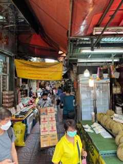 Today Jarunee Pimonsathean, her husband Mai and friend’s daughter (Ayaka) visiting from Japan picked us up at the hotel and took us to tour a bit of old China town. Both of them work in Community Preservation (which was why Jarunee was in Phuket in 2020) and know the area so very well. The markets, the remedies, the food was different than anything we’ve seen on our trip. I’ve been fighting bronchitis and laryngitis and bought Chinese remedies for both! I think they are helping.