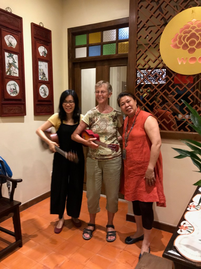 Back story: We met Jarunee in 2020 in Phuket at the elegant Woo Galley/Hotel that we treated ourselves to in old town Phuket. She helped visit an original house/museum that was not open that day (she was married there!) when she heard us in the town saying we were disappointed. I noticed her guitar case and asked if she’d like to play music later in the evening. Mrs. Woo was also interested so we had a gathering in the lobby and sang and played for a couple of hours.