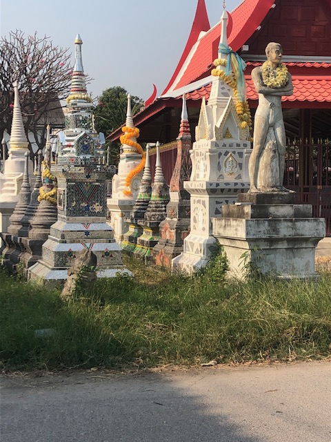 Next we visited Mai’s childhood home where his father still lives and they stay many weekends. It was on a lovely street and the house was beautiful. Lunch from the market was interesting and good and it was nice to talk about random subjects. One interesting topic – their nephew won a Fulbright scholarship for school in the US, Canada or Singapore. Jarunee asked about the danger of gun violence in the US and whether it be safe given all the killings. It was on my mind too.
